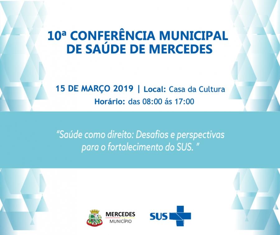 A Secretaria de Saúde de Mercedes realizará nesta sexta-feira (15), das 8h às 17h, na Casa da Cultura a 10ª Conferência Municipal de Saúde.