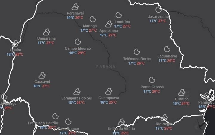 Em Cascavel a mínima para essa sexta-feira é de 18ºC.