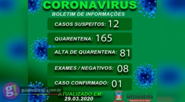 A Secretaria de Saúde de Medianeira, através da Vigilância Epidemiológica, confirmou na tarde deste domingo (29), o primeiro caso de Coronavírus - Covid-19 no município.