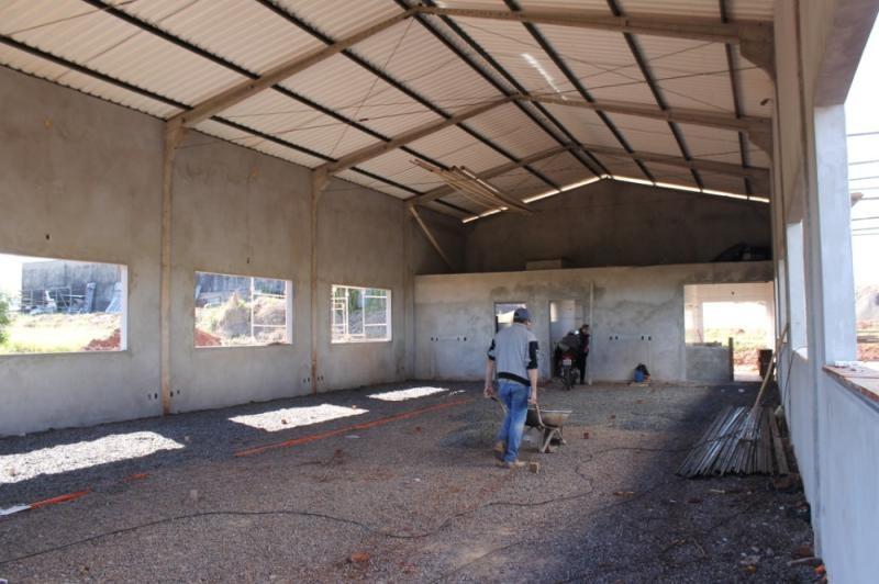 Os trabalhos na construção do barracão, que estão sendo realizados pela empresa Prespontes, vencedora do processo licitatório, encontram-se em fase de acabamento. Os investimentos na infraestrutura, a partir de recursos próprios do município, são de R$ 184.315,06.