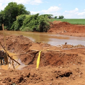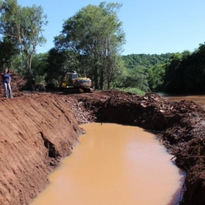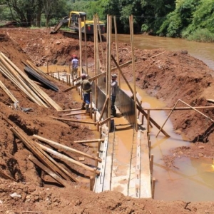 Os trabalhos de construção da ponte sobre o Rio Guaçu, que ligará a comunidade de Sanga Forquilha Mercedes a Planalto do Oeste Nova Santa Rosa, tiveram início.