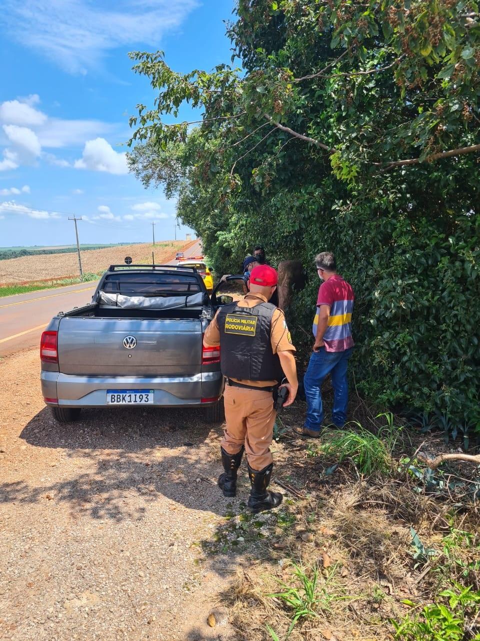 As 11h40 de hoje na PR 317 km 390, município de Toledo, foi dado apoio a Receita Federal na abordagem e fiscalização do veículo VW/ Saveiro licenciado em Maringá, no veículo estava dois ocupantes, ambos de a Maringá.