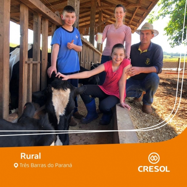 Anos depois o cooperado conheceu a agora esposa, Dulce uma mulher que abriu mão da vida urbana para junto com o visionário produtor de leite construir sua família. O casal que este ano comemora 17 anos de união, dedica a Cresol também a alegria de poder viver da produção leiteira. “Nos momentos mais difíceis a Cresol esteve lá para nos apoiar. A nossa primeira casa foi construída com o recurso da Cooperativa, onde logo depois meus pais vieram a morar. O barracão onde hoje estão as 25 vacas produtoras de leite também são provenientes de recursos da Cresol, enfim tudo o que construímos foi graças a Cooperativa. Tive ainda uma passagem muito importante no conselho da Cooperativa onde pude participar de reuniões e intercâmbios que me fizeram não desistir de continuar construindo a nossa história a partir da produção de leite”, contou Rogério.