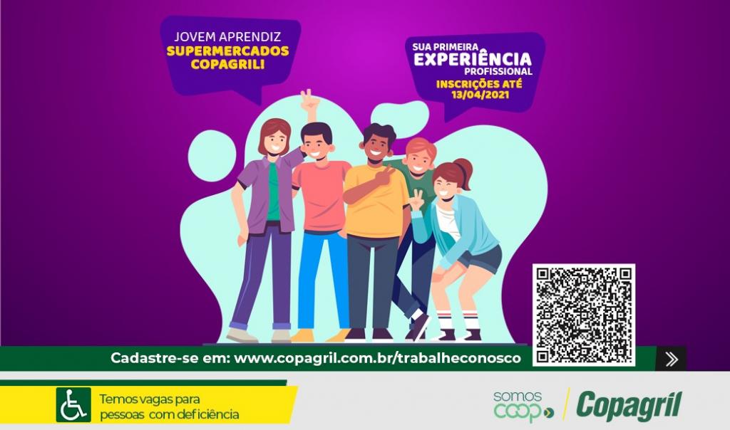 A Cooperativa Agroindustrial Copagril está com inscrições abertas para Jovem Aprendiz, programa que oportuniza a primeira experiência de trabalho formal para adolescentes e jovens. Para participar da seleção, os interessados devem ter mais de 14 anos e estarem estudando regularmente, também estão entre os requisitos o Documento de Identidade (RG), CPF e Carteira de Trabalho. São 23 vagas para atuação nos Supermercados Copagril nas cidades de Marechal Cândido Rondon, Nova Santa Rosa e no distrito de Novo Sarandi, em Toledo.
