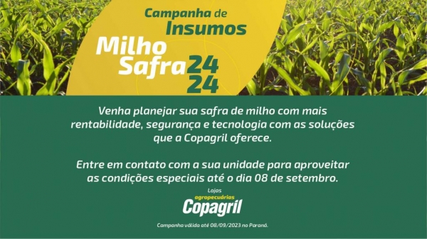 Com o objetivo de estimular seus associados ao planejamento antecipado para a safra de milho 2024/2024, a Cooperativa Agroindustrial Copagril lançou, nesta semana, a sua Campanha de Insumos das Lojas Agropecuárias Copagril.