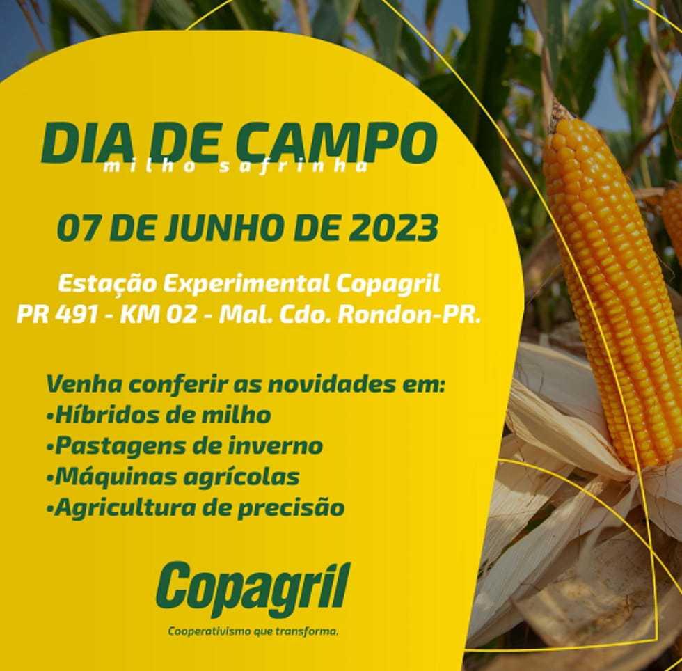 Com o objetivo de apresentar aos agricultores da região as tendências e as melhores opções de híbridos de milho para o plantio, a Cooperativa Agroindustrial Copagril promoverá, no dia 07 de junho, das 8h00 às 17h30min, na Estação Experimental Copagril, o Dia de Campo do Milho Safrinha 2023.