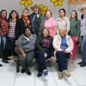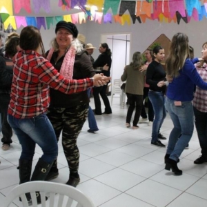 A Secretária de Assistência Social Andréa Hahn, Coordenadora do CRAS Vânia Rauber, Presidente da Câmara de Vereadores Kelli Kolm, equipe técnica do CRAS e CREAS e as monitoras das oficinas também participaram dos festejos juninos.