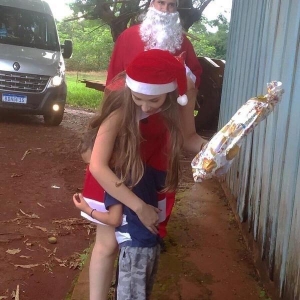 As crianças não tinham conhecimento de que estava participando do projeto, portanto foi uma grande surpresa para elas receberem os presentes.