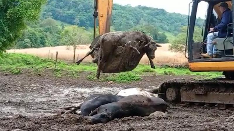 Todas as vacas leiteiras morreram, a maioria estava prenha. Eles contaram que a descarga foi tão forte que até peixes de um açude morreram.