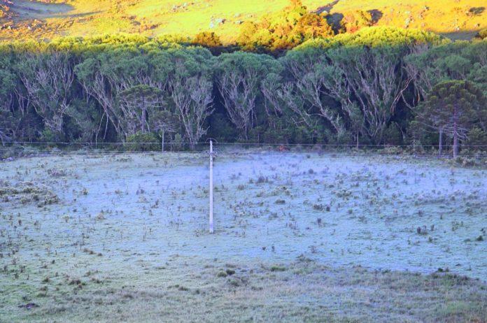 Os municípios de São Joaquim e Bom Jardim da Serra chegaram a registrar a formação de geada em diversos pontos de baixadas.