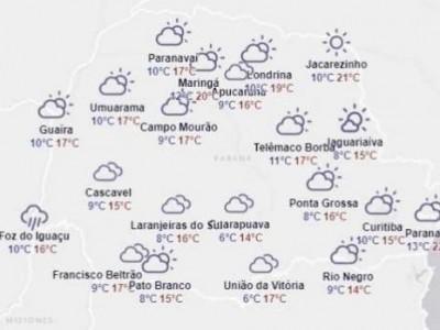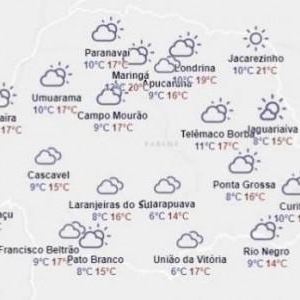 A segunda-feira (3) deve trazer chuvas isoladas a Cascavel, mas sem grande acumulado. A temperatura na capital do Oeste se mantém bem baixa entre 9 e 15°C. A massa de ar polar deixa a sensação térmica menor, por volta das 6h a percepção era de apenas 6°C.