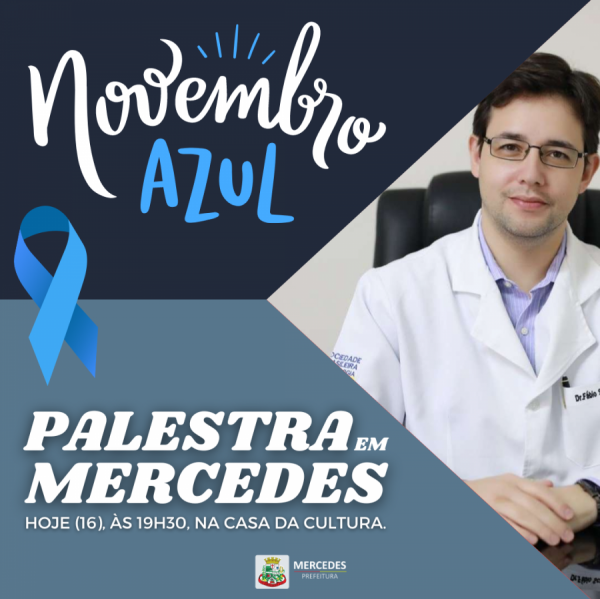 Em alusão ao Novembro Azul, campanha dedicada a saúde do homem, a Secretaria de Saúde de Mercedes realizará na noite de hoje (16), às 19h30, na Casa da Cultura, uma palestra com médico, Dr. Fábio Scarpa.