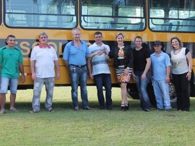 A Prefeita Cleci Loffi, o Secretário de Educação e Cultura Gilson Backes, a Secretária de Assistência Social Andréa Hahne servidores fizeram, na tarde desta última sexta-feira (21) em frente ao Paço Municipal, a entrega oficial doveículo que tem capacidade para o transporte de 59 alunos.