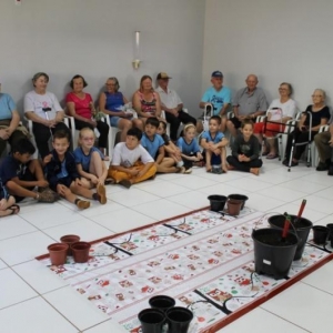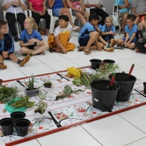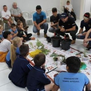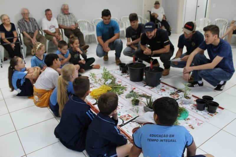 Com o apoio dos alunos do Curso de Agronomia da Pontifícia Universidade Católica (PUC) Câmpus Toledo as crianças realizaram o plantio de mudas de sálvia, babosa, alecrim, boldo, capim cidreira, entre outras, que foram trazidas pelos idosos do Projeto Roda de Chimarrão.