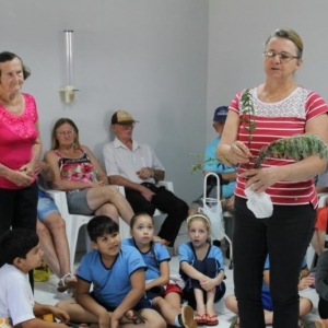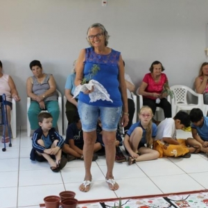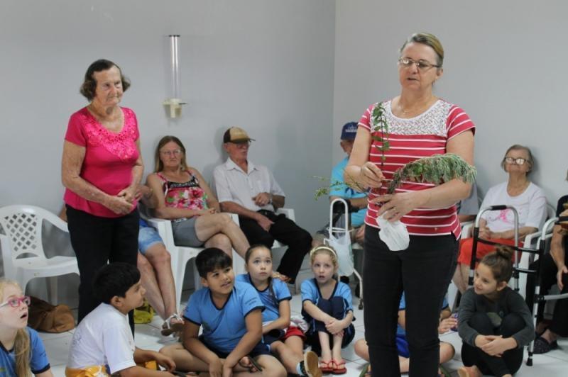 Durante a atividade os idosos e as crianças tiveram a oportunidade de acompanhar uma explicação sobre o uso dos chás e cuidados em relação às plantas medicinais com a representante da Pastoral da Saúde de Mercedes Rosemari Backes.
