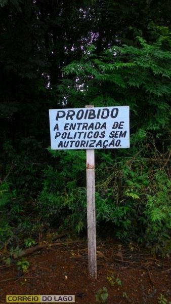 Um morador da cidade de Entre Rios do Oeste, cansado de ser iludido, proibiu a entrada de políticos em sua propriedade, na área rural do município, deixando um aviso claro na entrada do imóvel.