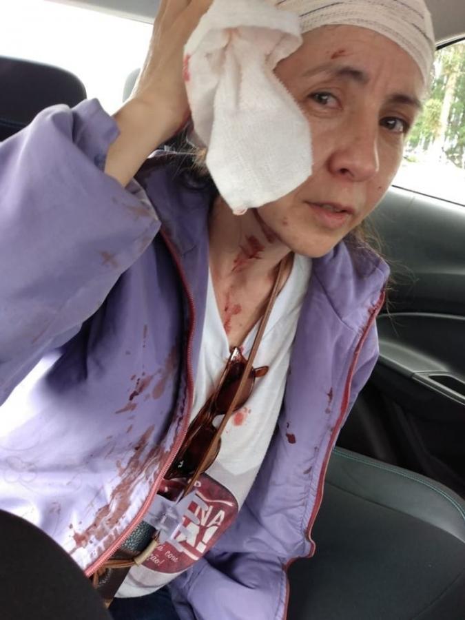 A professora Ronaime teria sido ferida por um tiro de bala de borracha na região da cabeça e precisou ser encaminhada para atendimento médico.