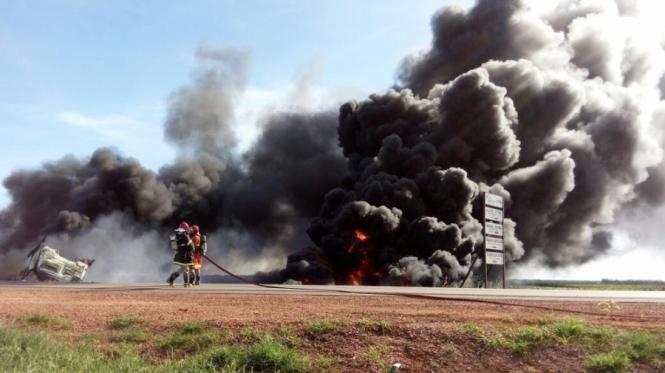 De acordo com os bombeiros, o caminhão-tanque seguia pela rodovia estadual, sentido Nova Ubiratã (município a 506 km da capital), enquanto que outro veículo de carga, que teria supostamente forçado uma ultrapassagem, trafegava sentido Sorriso.