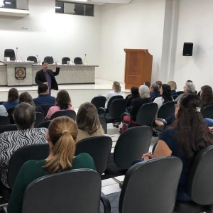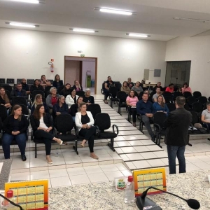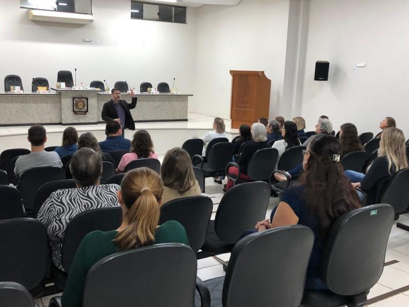 Autoridades como o prefeito Laerton Weber, o Dr. Marcus Vinicius Xavier, da Promotoria de Justiça da Comarca de Marechal Cândido Rondon, e a secretária da pasta Indiara Feix, participaram da palestra.
