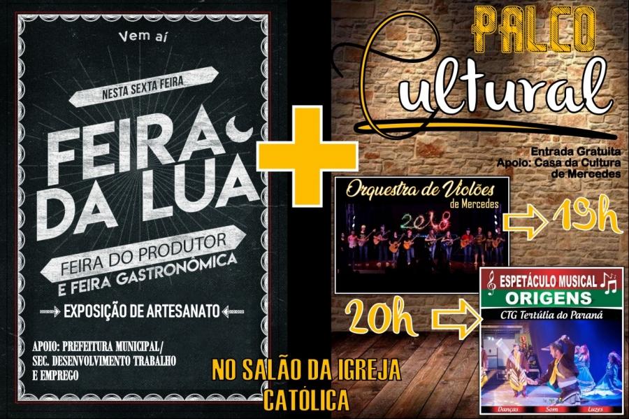 Em razão das comemorações do 26° aniversário de Mercedes a Feira da Lua que será promovida nesta sexta-feira (14) também contará com uma programação especial. Além da praça de alimentação e comercialização de produtos de diversos segmentos essa edição contará com o Palco Cultural.