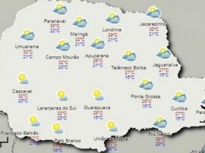Na fronteira, Foz do Iguaçu, a máxima pode alcançar a casa dos 34ª, mas a chuva deve prevalecer.