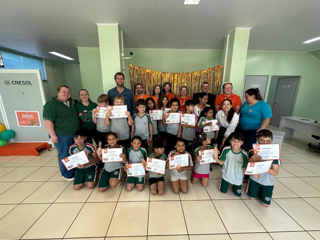 Durante o evento, os alunos da Escola Municipal Comandante Luiz Augusto Morais Rego comemoraram a conclusão de um ciclo de aprendizado sobre como economizar, planejar e compreender o funcionamento de uma cooperativa. O presidente da Cresol Integração, Julcemar Mierzwinski, destacou a importância da ação. “Para nós da Cresol é uma honra podermos levar o conhecimento sobre cooperativismo e educação financeira para quem será o futuro dos locais onde atuamos. Isso faz parte da nossa missão”, afirmou.