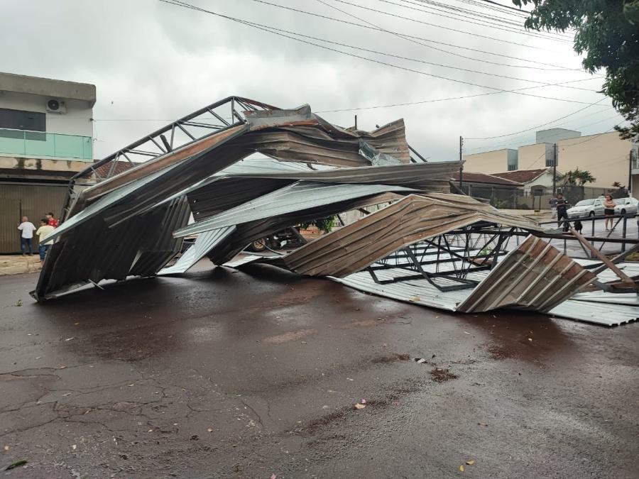 A situação ocorreu nas proximidades do cruzamento da Rua dos Pioneiros com a Rua dos Bandeirantes. Toda a parte metálica e ferragens da cobertura foi arremessada e caiu no meio da via, interditando o trânsito no local.