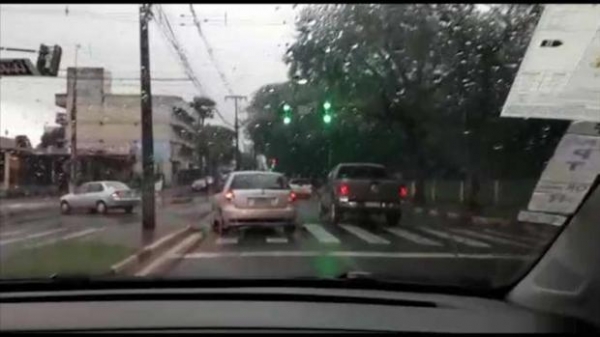 Na Terra das Cataratas, a chuva começou pela madrugada. Em certos momentos pancadas de fortes atingiram a cidade.