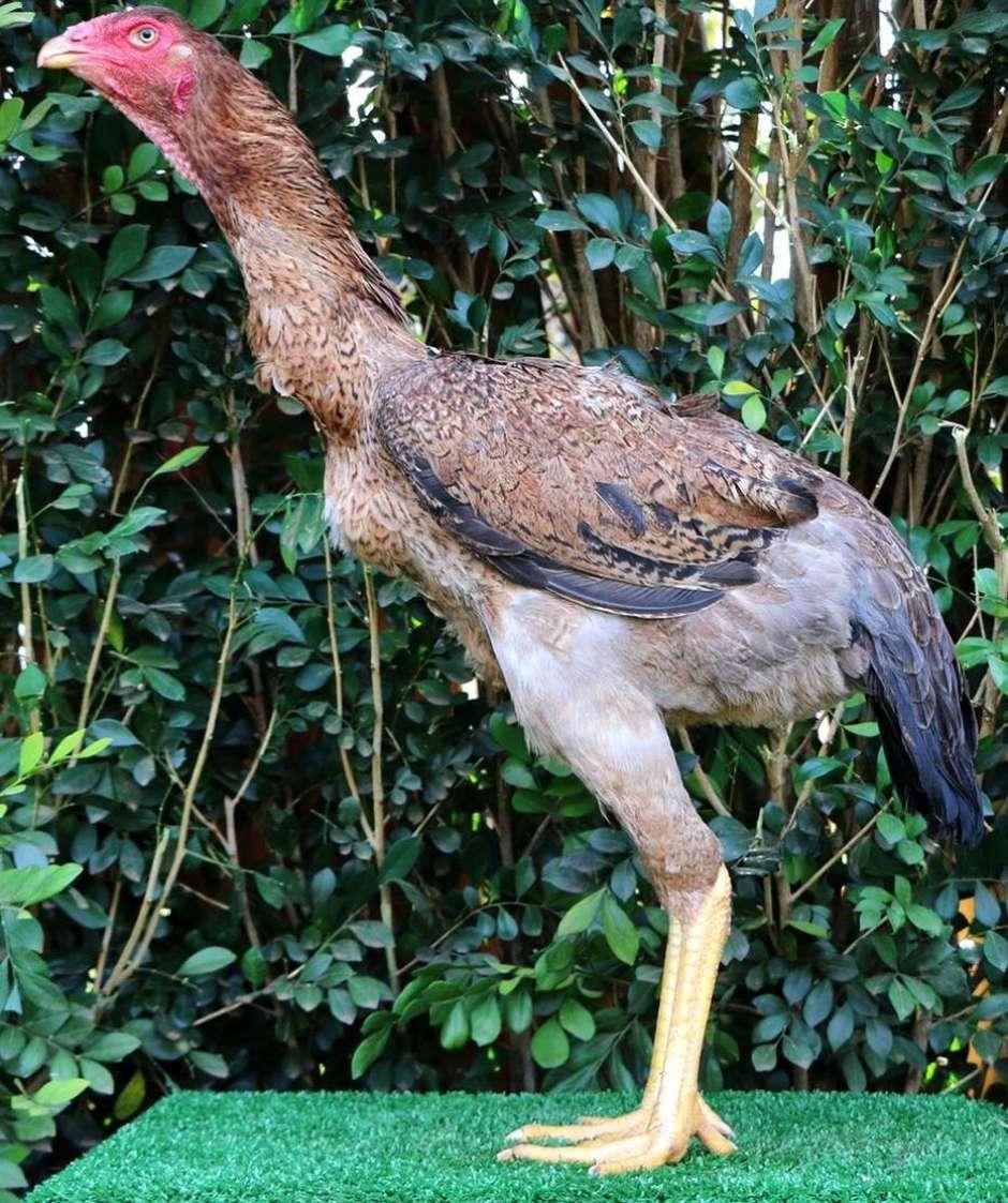 O principal atributo é o porte altivo e avantajado, que atrai o interesse de criadores, mas as aves são também dóceis. Poliselli e o irmão Diogo, donos do criatório Diamante, em Jaguariúna, se especializaram na raça. Eles já obtiveram frangas maiores que a Betina, como a Viola, com 1,06 m, e a Mamba, recordista em tamanho, com 1,09 m.