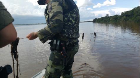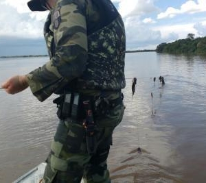 Durante o patrulhamento foi localizado 1170 metros de espinhel armados em modo de espera no Lago de Itaipu, sem lacres de identificação.