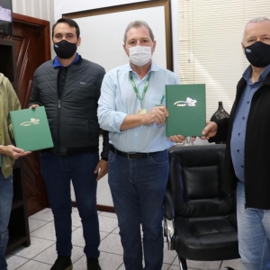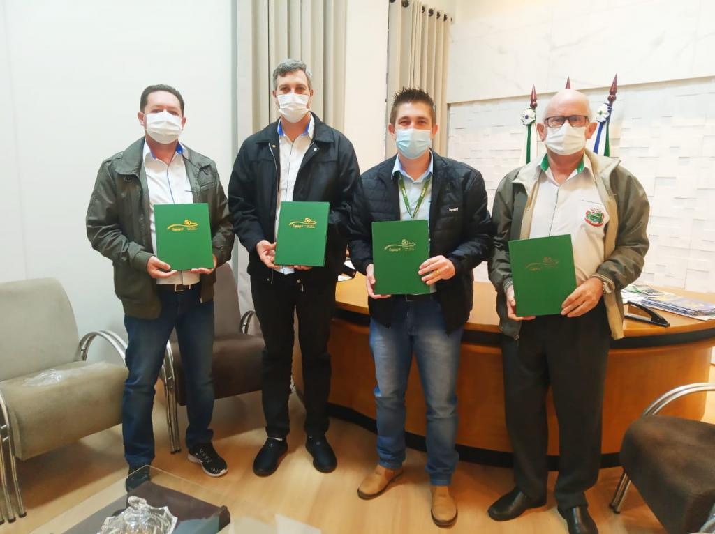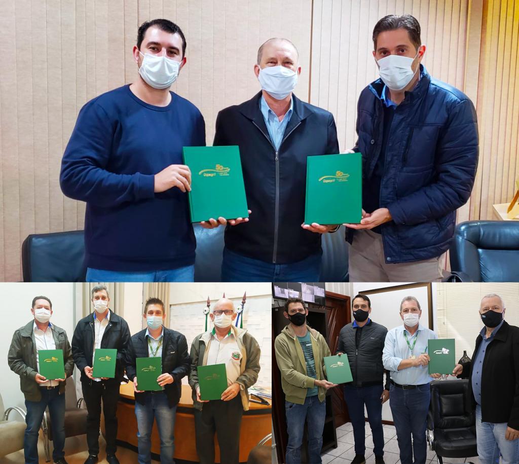 No município de Entre Rios do Oeste, o gerente da Copagril, André Kochepka, esteve com o prefeito, Ari Aloísio Maldaner; vice-prefeito, Luciano Schaefer; e o secretário de Educação e Cultura, Ilvo Herrmann; quando realizou a entrega do livro dos 50 anos.