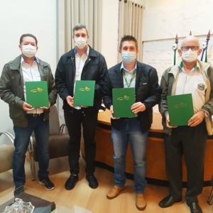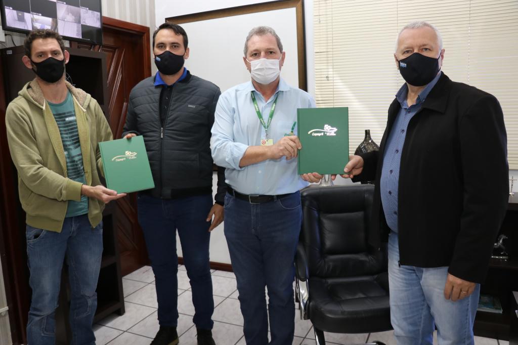 Em Pato Bragado, o gerente da Copagril, Clair Zóia, entregou o livro durante encontro especial com o prefeito, Leomar Rohden (Mano); vice-prefeito, John Nodari; e o secretário de Educação e Cultura, Júnior Ivan Bourscheid.