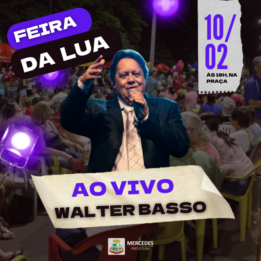 A Feira da Lua que será realizada hoje (10), em Mercedes, contará com animação do cantor Walter Basso. O evento acontece a partir das 19h, na Praça. A população terá mais uma vez a oportunidade de adquirir mercadorias direto do produtor rural e se divertir com a família.