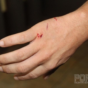 O homem, muito alterado não deixou a equipe médica realizar o atendimento, os policiais então encaminharam o agressor para a viatura de polícia, quando estavam levando o homem pra o camburão ele começou a agredir os policias, um deles ficou com ferimentos na mão.