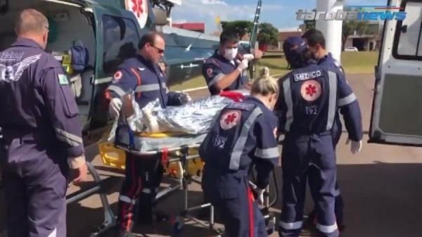 Um helicóptero do Consamu pousou na tarde desta sexta-feira (13), nas proximidades do estádio Olímpico de Cascavel trazendo uma vítima de acidente de trânsito ocorrido na cidade de Nova Aurora.