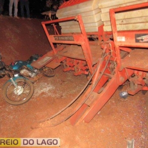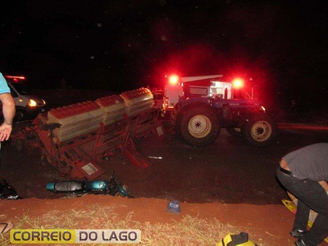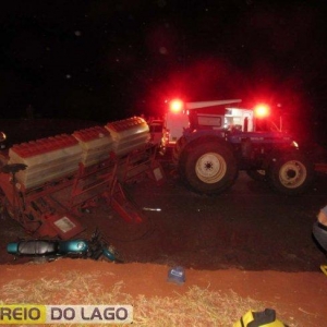 Aparentemente o trator com a plantadeira acoplada seguia pela PR-488, sentido Santa Helena/Diamante D’Oeste, quando a F250 bateu na traseira da plantadeira. Uma moto também se envolveu no acidente.