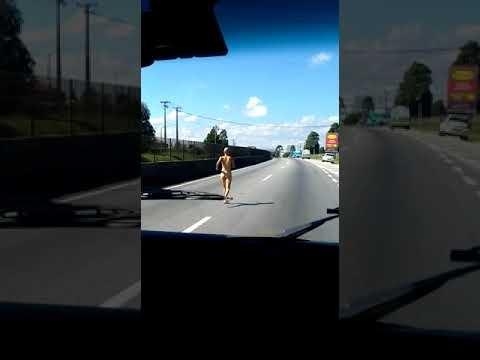 Uma mulher foi flagrada correndo nua no meio do trânsito na BR-277, sentido Litoral, no Uberaba, na quarta-feira (25) por volta das 11 horas. Um dos motoristas conseguiu gravar o acontecimento inusitado.