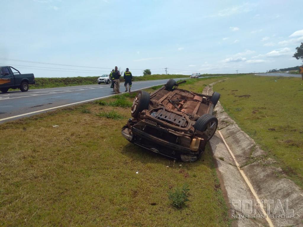 Um capotamento foi registrado no início da tarde desta segunda-feira (28), próximo ao KM 93 na rodovia BR 467, trecho que liga Toledo a cidade de Cascavel e envolveu o veículo Hyundai i30 placas de Cascavel conduzido por Guilherme Ossowske de 24 anos.