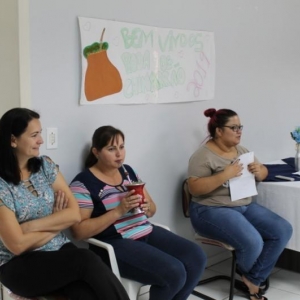 Os participantes receberam as boas-vindas da Prefeita Cleci Loffi, da Secretária de Assistência Social Andréa Hahn, Presidente da Câmara de Vereadores Kelli Kolm e da Coordenadora do CRAS Vânia Rauber.
