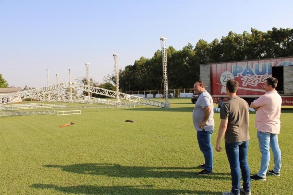 Os preparativos para a realização da Festa em comemoração aos 30 anos de Mercedes seguem em ritmo acelerado. Hoje (1º), a empresa responsável pela montagem das estruturas metálicas e palcos das comemorações, iniciou os trabalhos no Clube Grêmio, palco da Festa.
