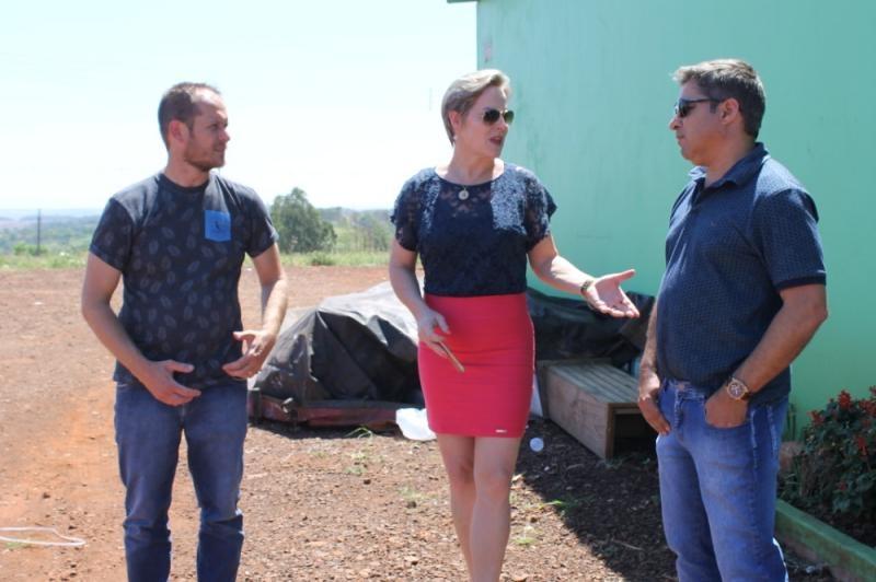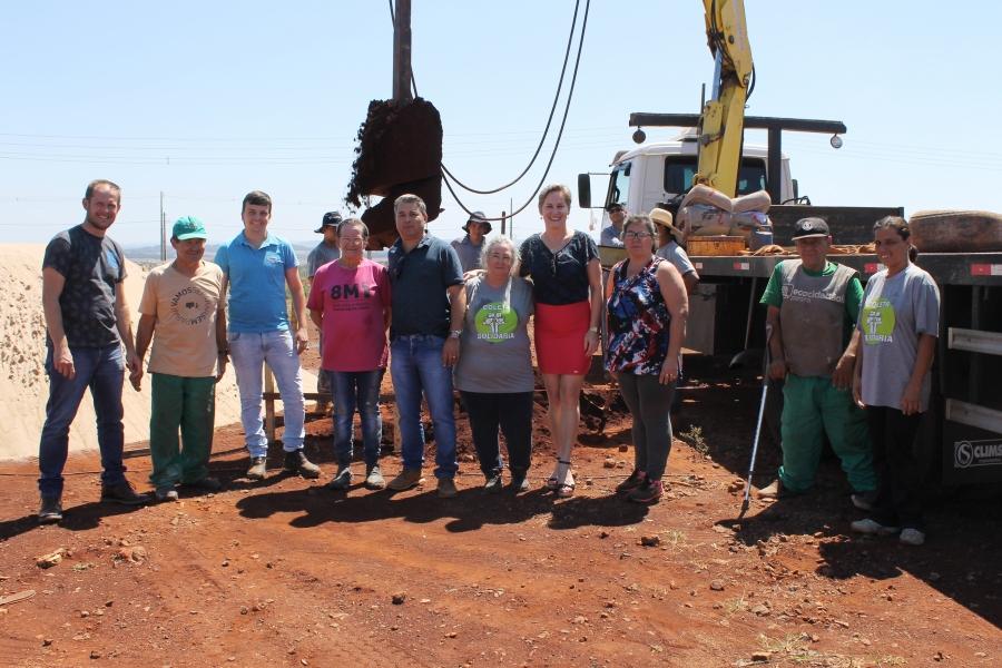 A Prefeita Cleci Loffi, juntamente com o proprietário da empresa responsável pela construção Ed Carlos Trindade, Engenheiro Civil da Prefetura Dyeiko Henz, Técnico da UVR Rodeni Effting, além dos agentes recicladores, estiveram no local acompanhando o início dos trabalhos.