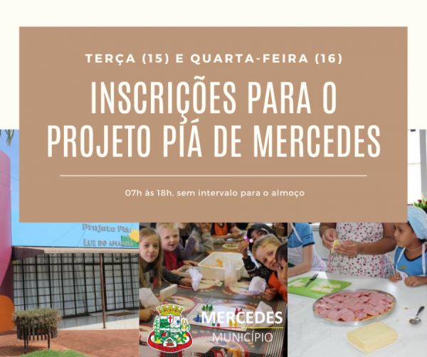 A Administração Municipal de Mercedes informa que as inscrições do serviço de convivência e fortalecimento de vínculos do Projeto Piá Luz do Amanhã, iniciam nesta terça-feira (15).