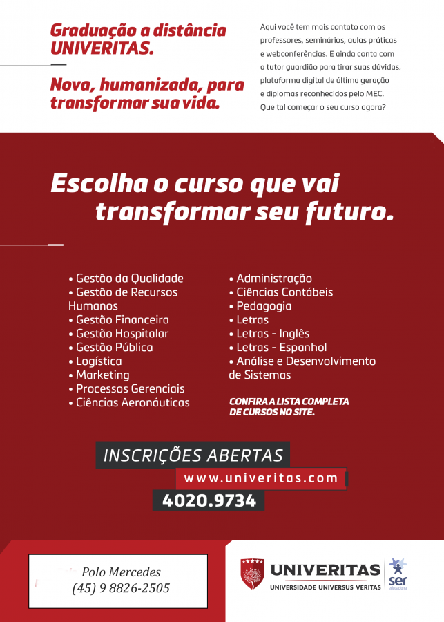 Estão abertas as inscrições para cursos na modalidade de ensino a distância pela Universidade Universus Veritas (Univeritas) em Mercedes.