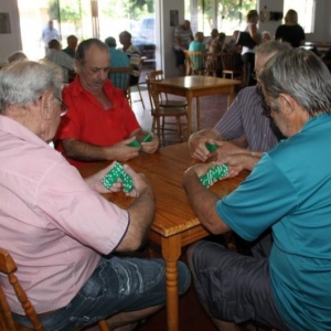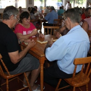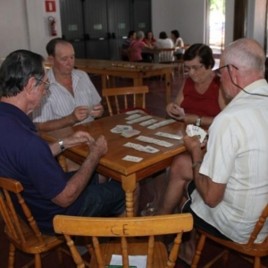 As modalidades de Bolãozinho Mesa, Canastra e Dominó estão sendo disputadas no Clube dos Idosos enquanto as competições de Bolão na Comunidade da Linha Sanga XV.