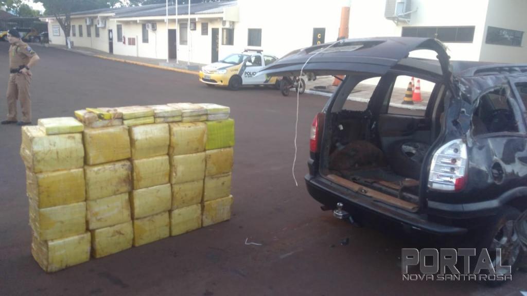 A vítima conduzia uma Meriva com placas de Cianorte, Noroeste do Paraná, carregada com aproximadamente 500 quilos de maconha. Ainda não há informações de quem atingiu o rapaz, que capotou o automóvel quando foi baleado.
