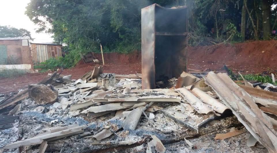 A casa de apenas um quarto, sala e cozinha conjugadas ficou completamente destruída.