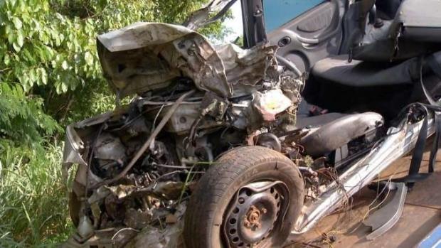 O impacto foi tão forte que arrancou o teto do Celta, com a batida o caminhão em seguida bateu contra o barranco.