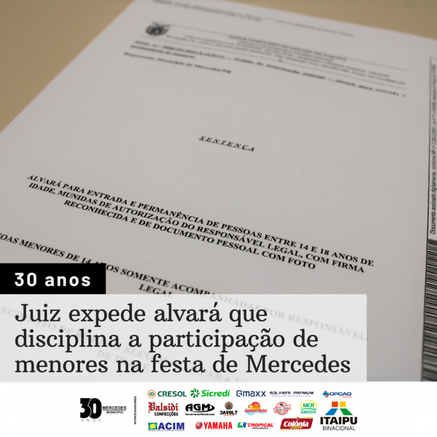 A Prefeitura de Mercedes encaminhou para a Vara da Infância e da Juventude pedido de autorização judicial para a entrada e permanência de menores de 18 anos durante a festa do município, que acontece de 9 a 11 de setembro, no Clube Grêmio.