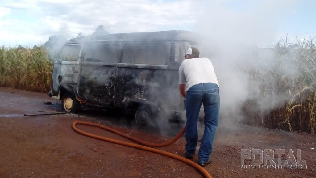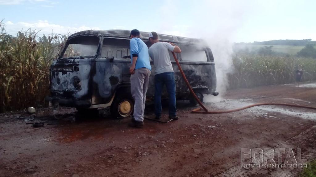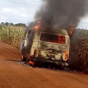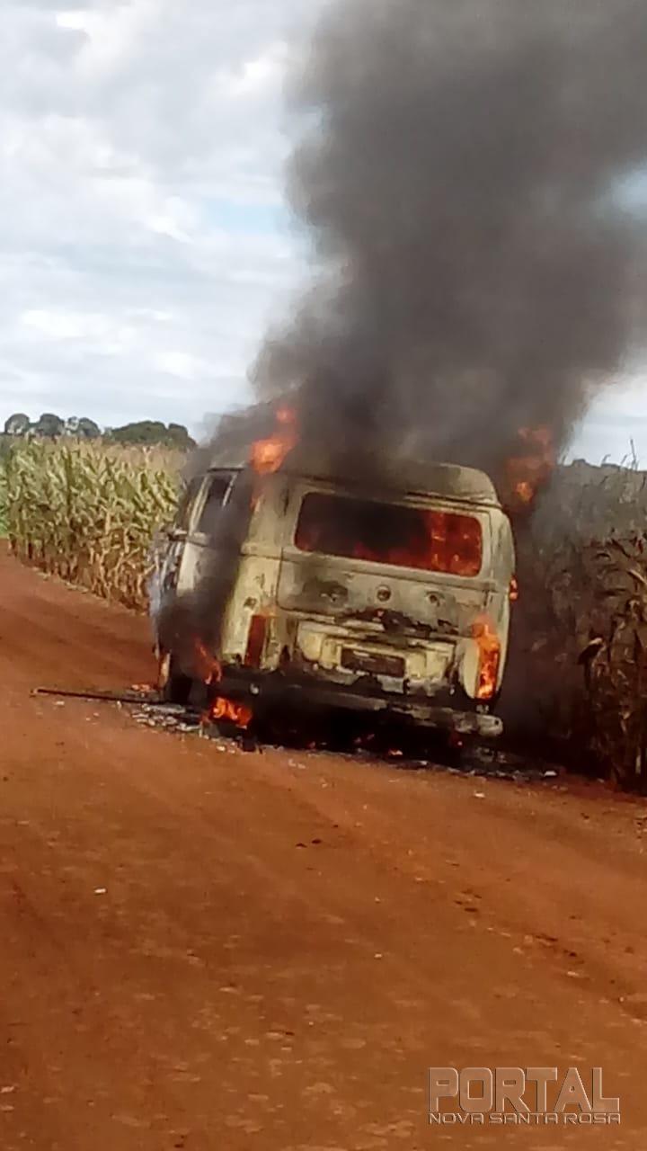 Kombi pega fogo e fica destruída no interior de Mercedes