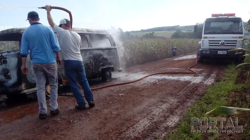 Na manhã de hoje (07) um veículo VW/Kombi pegou fogo em uma estrada do interior do município de Mercedes, segundo as primeiras informações o veículo seguia sentido Mercedes a Linha 17 de Setembro quando o condutor percebeu que seu veículo estaria pegando fogo.